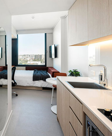 Waterloo nằm ngay trung tâm khu vực nội thành, chỉ cách CBD vài phút đi bộ. Bước ra ngoài để khám phá các quán cà phê, cửa hàng và công viên xanh mát, với ga metro mới ngay bên cạnh giúp bạn nhanh chóng và dễ dàng đến khuôn viên trường hoặc bất cứ nơi nào trong thành phố.